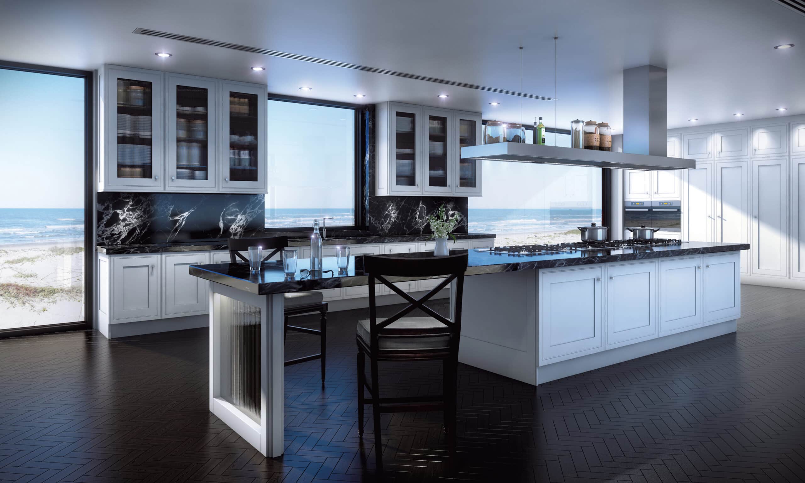 Elegant and contemporary, the collection features a square-framed door with a recessed flat panel. The minimalist clean lines form a sophisticated foundation, allowing for the seamless integration of exquisite details and bespoke design elements.