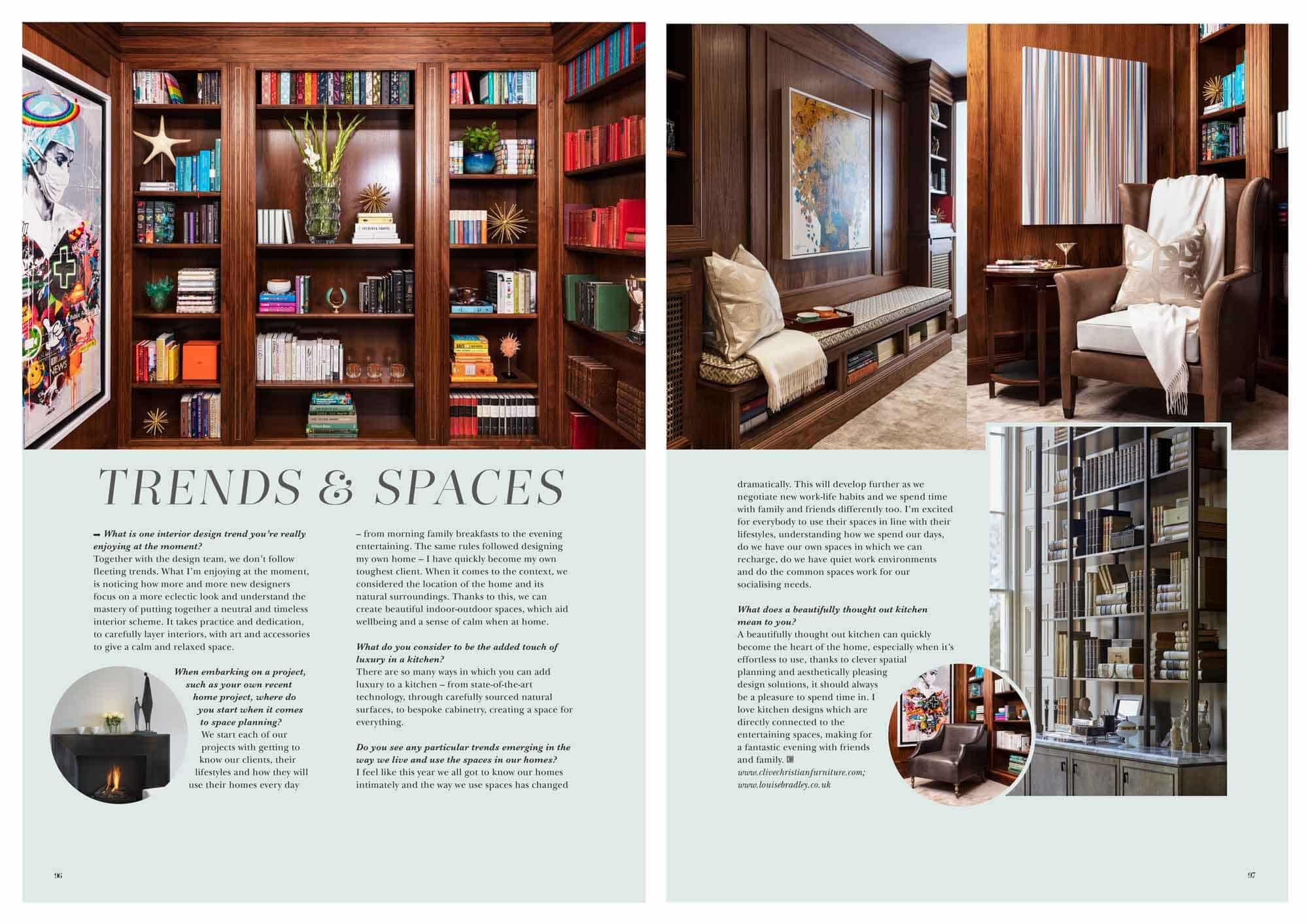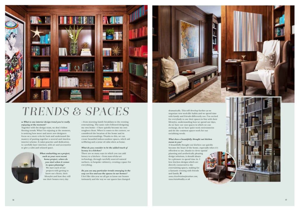 The feature focuses on an interview Clive Christian Furniture conducted with Louise Bradley whilst working together on a recent partnership project. It also showcases the Clive Christian Furniture ‘Ultimate Zoom Backdrop’.
