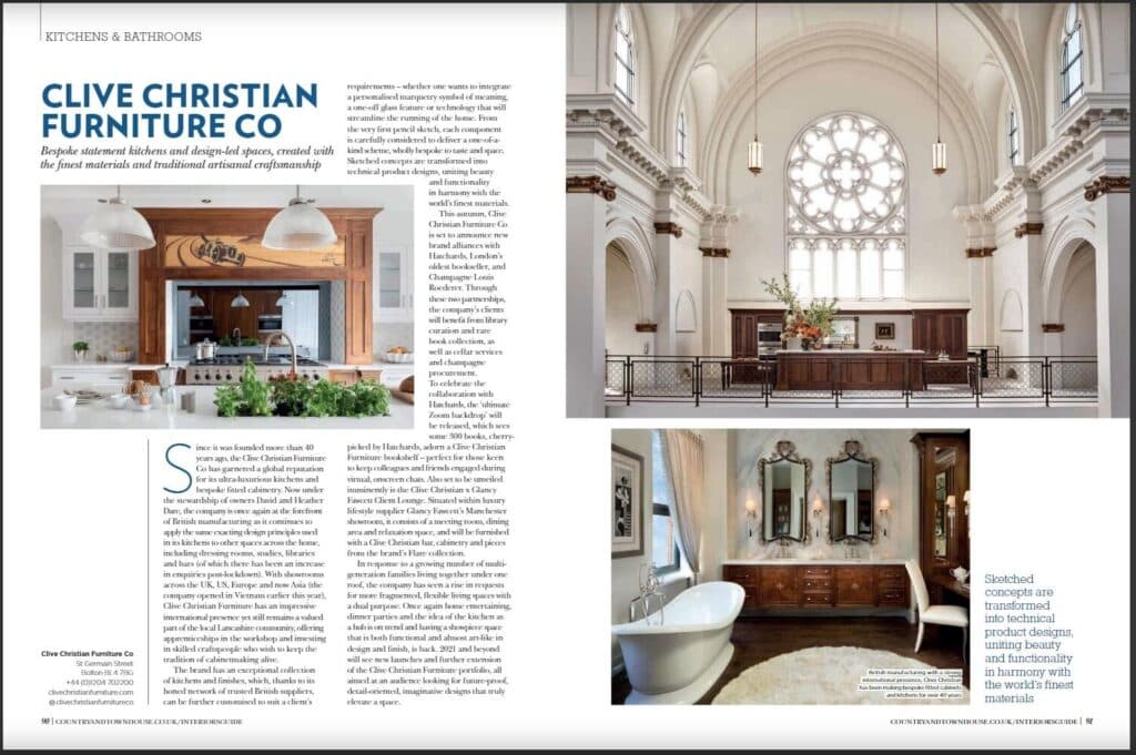 We proudly feature in Country & Townhouse Interiors guide. Showcasing the Top 50 interior designers within the industry, we take pride of place in the Kitchens & Bathroom section.