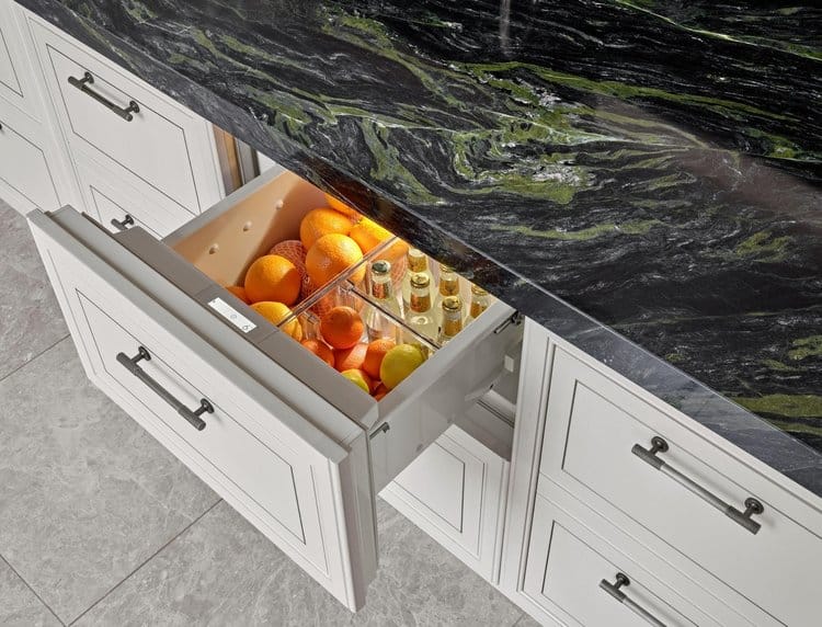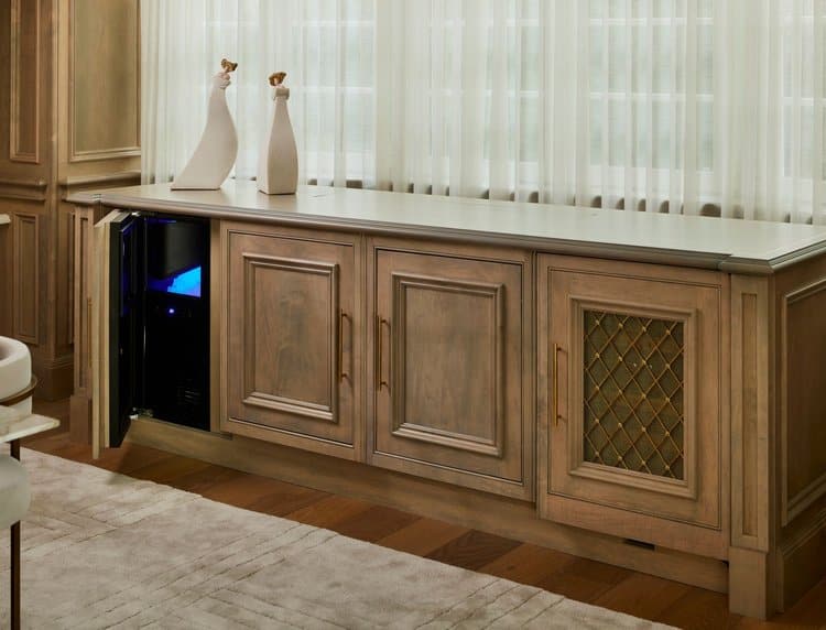 While refrigeration is an essential element of any home, at Clive Christian Interiors, we elevate this necessity by thoughtfully integrating it into unexpected spaces, enhancing both convenience and elegance. Consider a bespoke dressing room, where discreetly concealed refrigeration can be installed for storing skincare products and face creams at their optimal temperatures. Similarly, imagine elevating your morning routine with warming drawers, gently warming your clothes to perfection for those crisp winter mornings. In dining rooms, we’ve incorporated hidden ice machines for effortless entertaining, while in kitchens, refrigerator drawers within islands transform into sophisticated cocktail stations. These thoughtful integrations display how we imbue everyday experiences with the essence of luxury and personalised convenience.