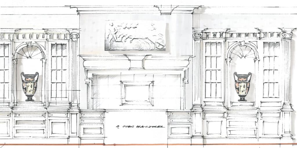 Another critical component is the mantle. It marks the centre point of the room, and the size of the mantle dictates the proportions of the rest of the scheme.