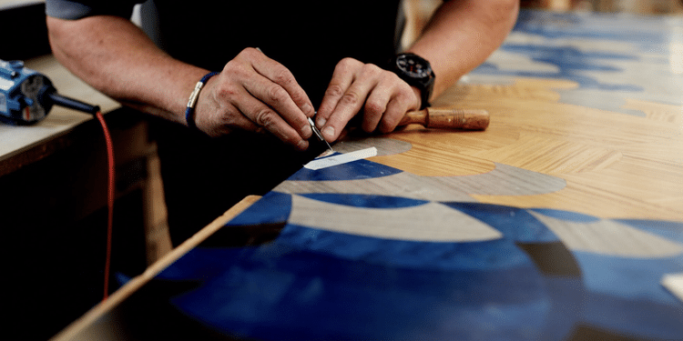 We’re also really excited about our apprenticeship scheme. One of our marquetry team, Beth, came to us through an apprenticeship and now specialises in veneering and marquetry.