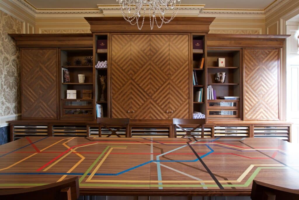 For our London Mayfair studio, we created a statement table top displaying the iconic London Tube Map, with each individual line carefully mapped out to scale.