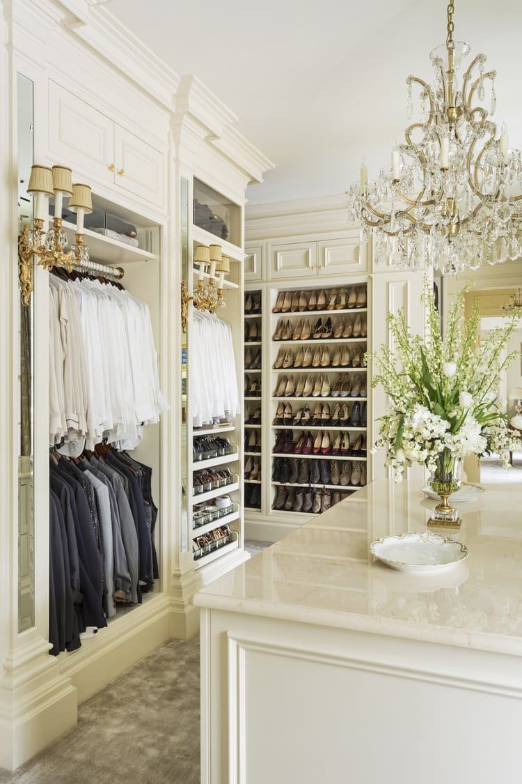Clients are looking for innovative ways to organise their clothing and accessories, too. Clive Christian’s dressing rooms can be custom-designed to accommodate extensive collections of shoes, clothing and watches. For a recent project in a Mayfair townhouse, we created multiple pullout shelves with dividers and drawer inserts to accommodate sunglasses, costume jewels, scarves and watches.