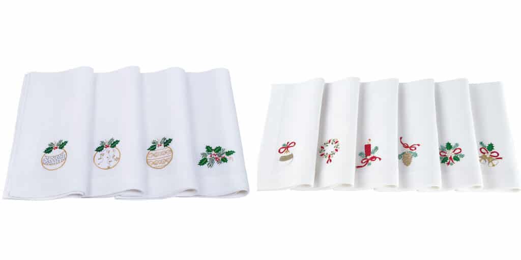 We also love UK-based Gayle Warwick’s hand detailed festive napkin creations. These napkins come in a range of seasonal motifs and make for an adorable addition to your tabletop.