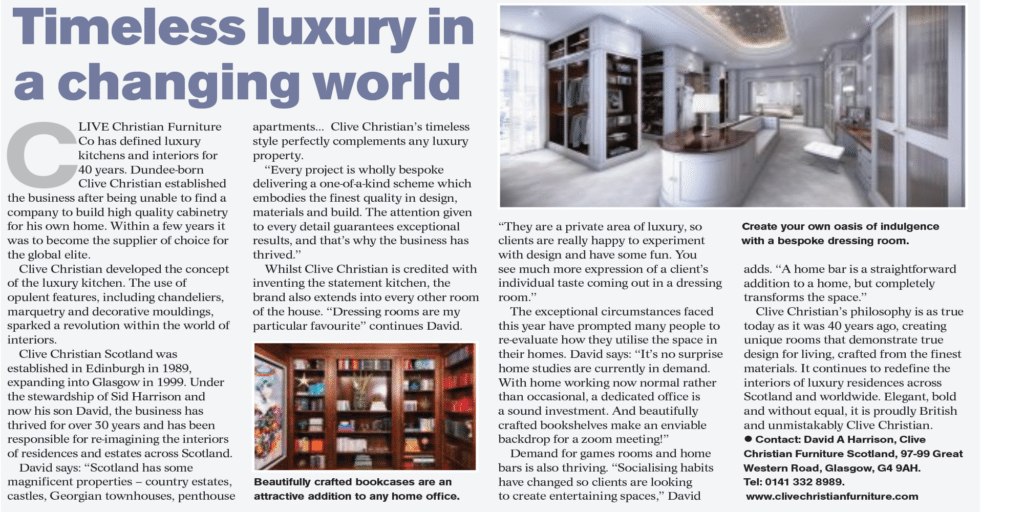 The Best of Scotland – October 2020 issue. Ourselves and our Scotland Showroom & Design consultancy proudly featured in the October issue of The Herald’s Best of Scotland.
