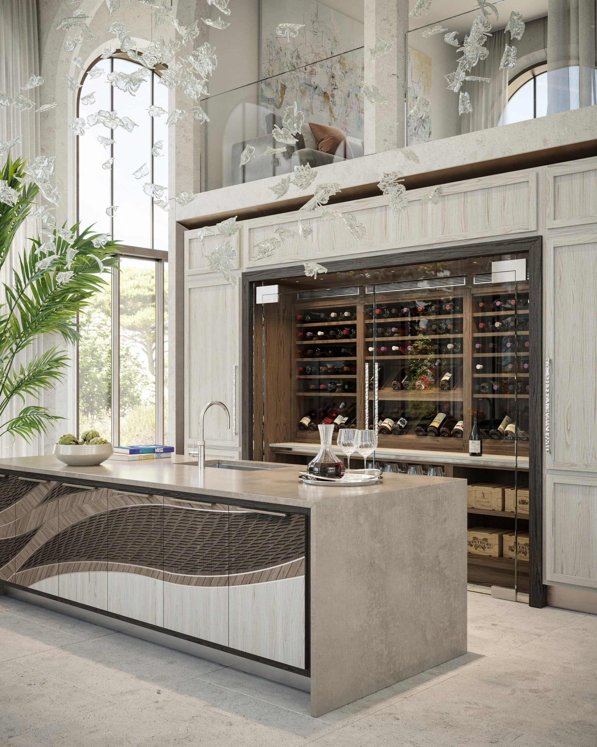 Wine storage integrated into Clive Christian’s Opus kitchen.