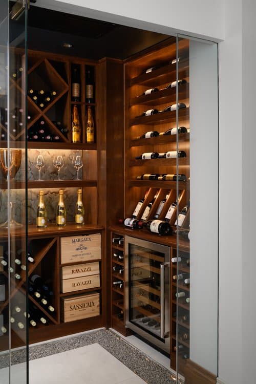 Love also recommends thinking about how the space might evolve as your collection grows: “Do you need space for case storage, or larger, unusual-shaped bottles or even spirits? Will the room require stemware storage space, a pouring table or a sink?”