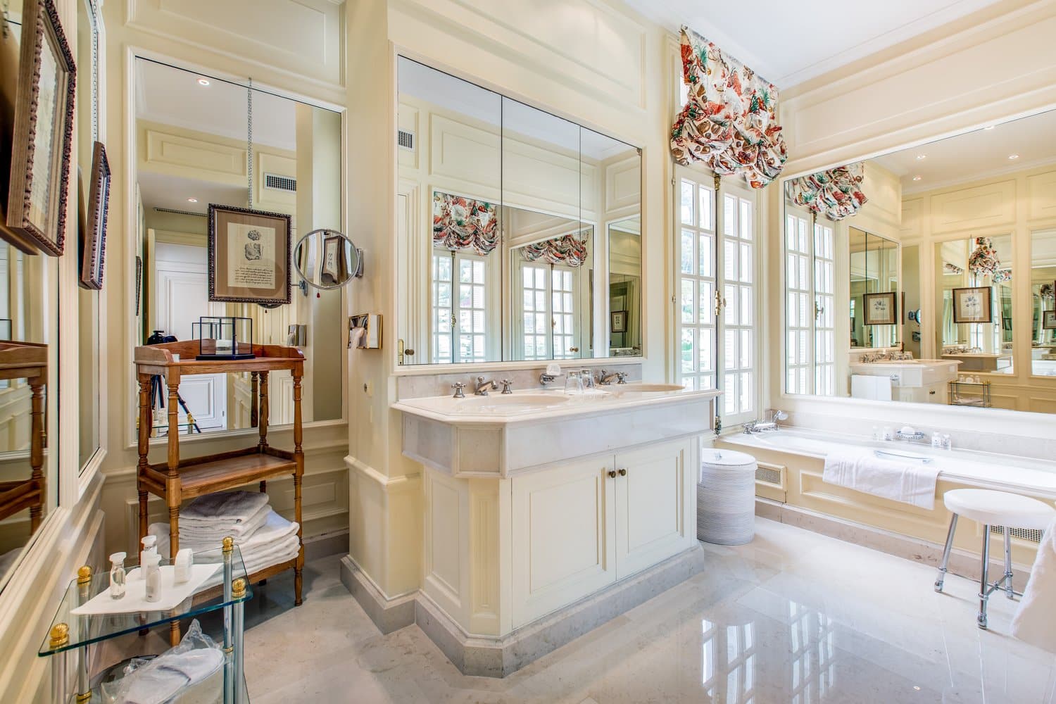 This is a fabulous house to rent. A monumental entrance hall with a superb staircase, sets the tone: spacious, bright and prestigious. There are marble columns, fireplaces, parquet flooring, high ceilings and a vast terrace, which has spectacular views across the Mediterranean Sea to Monte Carlo itself. The house has six bedrooms, but extra guests can check into the Monte-Carlo Beach Hotel next door, a fixture on Monaco’s society scene for nearly as long as the villa. And both hotel and villa guests have access to the Monte-Carlo Beach Club.