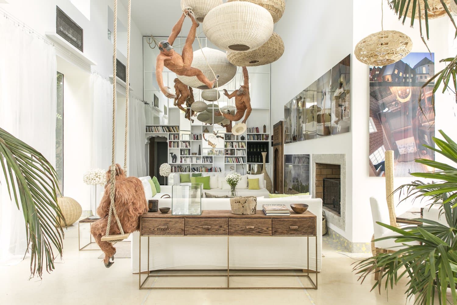 One of the first encounters you’ll have is with the giant sheep by the swimming pool. Then there’s the giraffe in the dining room, and the orangutans in the living room. In the evening, have sunset cocktails overlooking Fourtou’s ‘Maison Tombée Du Ciel’, or the ‘House Fallen From The Sky’ – a full size, upside-down house set in a field – before dining Under the Tree of 1001 Candles.