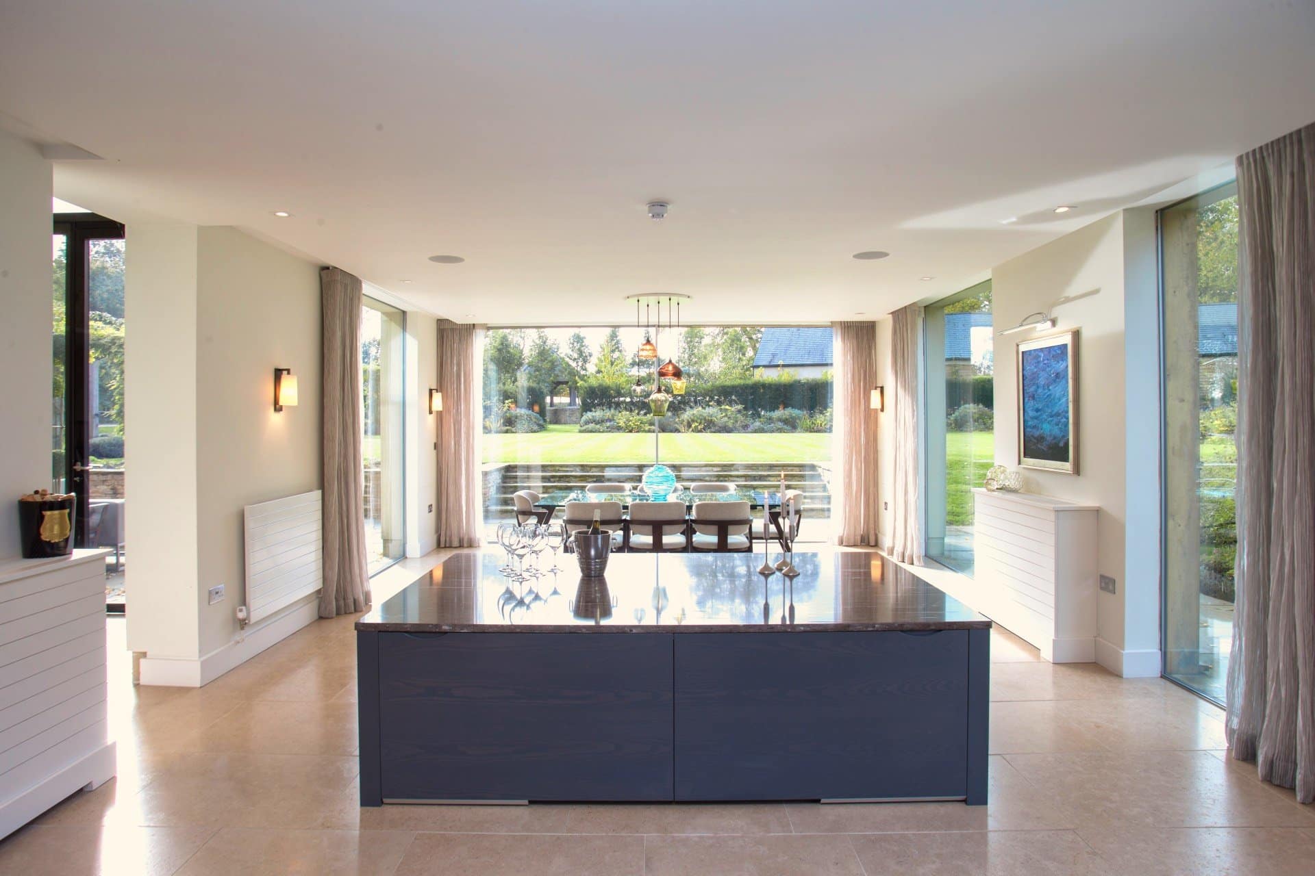 Five-minutes drive from Oxford Airport, the gates open onto a spectacular gravel drive lined with trees. After falling into dereliction, the lodge was completely renovated in 2013. Spread over three floors, it’s light and bright with large windows overlooking the estate. There’s a whisky room, library, cinema and a professionally-equipped kitchen. Plus, seven bedrooms mean there is plenty of space for everyone. Head outside, and there’s a salt water swimming pool and a hot tub, with the Pool House housing the games room, bar, sauna, gym and steam showers. It also has a large fire-pit and a golf range.