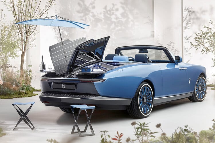 “As one of the most beautiful forms that exists, yachts are also a constant source of inspiration for other industries. In June 2021, Rolls-Royce Motor Cars launched its highly anticipated new Coachbuilt commission, Boat Tail, with the J Class Yacht acting as “spiritual guidance” for the project. A modern reinterpretation of the Boat Tail body style from the later 1920’s, the J Class inspired new levels of simplicity with its form. The rear body is finished with a wooden veneer, inlaid with polished stainless-steel pinstripes. In Boat Tail, Rolls-Royce masterfully tells a story of the past, present and future.”
