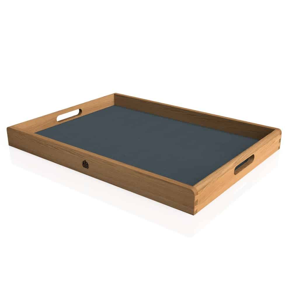 The Large Serving Tray is handcrafted using luxurious oak timber with a sumptuous dark blue leather base. The tray is etched beautifully with Clive Christian Interior’s iconic coat of arms branding. The Serving Tray is available a variance of stained finishes to compliment your home. The ultimate accessory for breakfast in bed or serving evening cocktails.